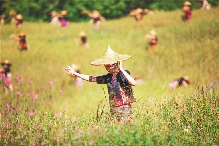 11月21日,在白沙黎族自治縣青松鄉(xiāng)擁處村、青松村等村莊的山坡上、山谷里,放眼望去,在群山疊翠間,漫山遍野都是金黃色的山蘭旱稻,這般豐收的場景尤為賞心悅目。當(dāng)天,2021年白沙“啦奧門”山蘭文化節(jié)在青松鄉(xiāng)擁處村啟幕,活動旨在讓更多的人知曉海南黎族山蘭旱稻的農(nóng)耕文化,進一步提升“啦奧門”山蘭文化節(jié)民族品牌活動的影響力,助力鄉(xiāng)村振興“加速跑”。