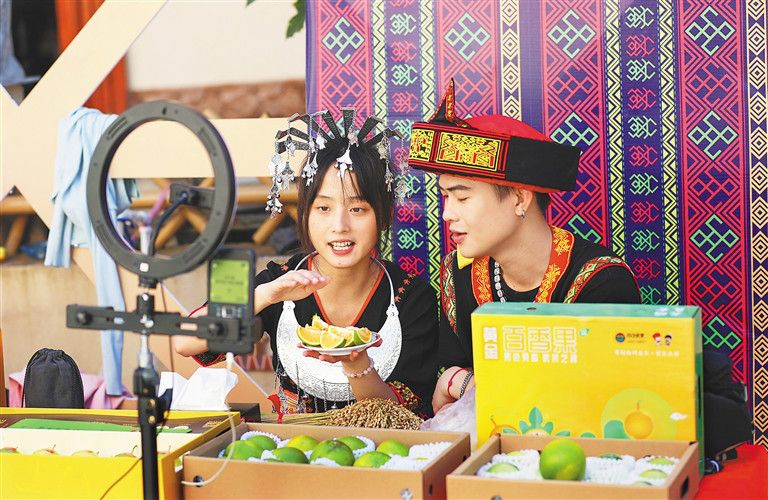 當(dāng)天,活動主辦方還在擁處村豐收大道兩側(cè)開展消費助農(nóng)大集市活動,設(shè)置山蘭米、山蘭酒、紅心橙、隕石坑有機茶等各鄉(xiāng)鎮(zhèn)特色農(nóng)產(chǎn)品、美食小吃展銷平臺,同時利用網(wǎng)絡(luò)直播平臺開展白沙特色農(nóng)產(chǎn)品商貿(mào)推介活動等。