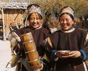 在工布地區(qū),不管是遠(yuǎn)方的來(lái)客,還是常來(lái)常往的朋友,一踏進(jìn)主人的新家,主人首先端出的是香噴噴的酥油茶。如果是尊貴的客人,還要被請(qǐng)到上座。招待來(lái)客時(shí),主人會(huì)敬上酥油茶和青稞酒,尤其是青稞酒,主人要兩手棒著,恭敬地送到客人手上,客人喝一口,主人添一次,連續(xù)三次??腿俗詈笠豢跉獍驯械木坪韧?,這就是通常所說(shuō)的三口一杯。如果客人推辭,主人還要獻(xiàn)上優(yōu)美動(dòng)聽(tīng)的酒歌,以此來(lái)表達(dá)主人的熱情和對(duì)客人的尊敬,直到客人把杯中的酒喝完為上。手捧酒杯,主人依次要給所有的來(lái)客敬上一遍。杯杯醇酒,盛滿(mǎn)了工布人的情和意。那情景,常令在場(chǎng)的人感動(dòng)不已。