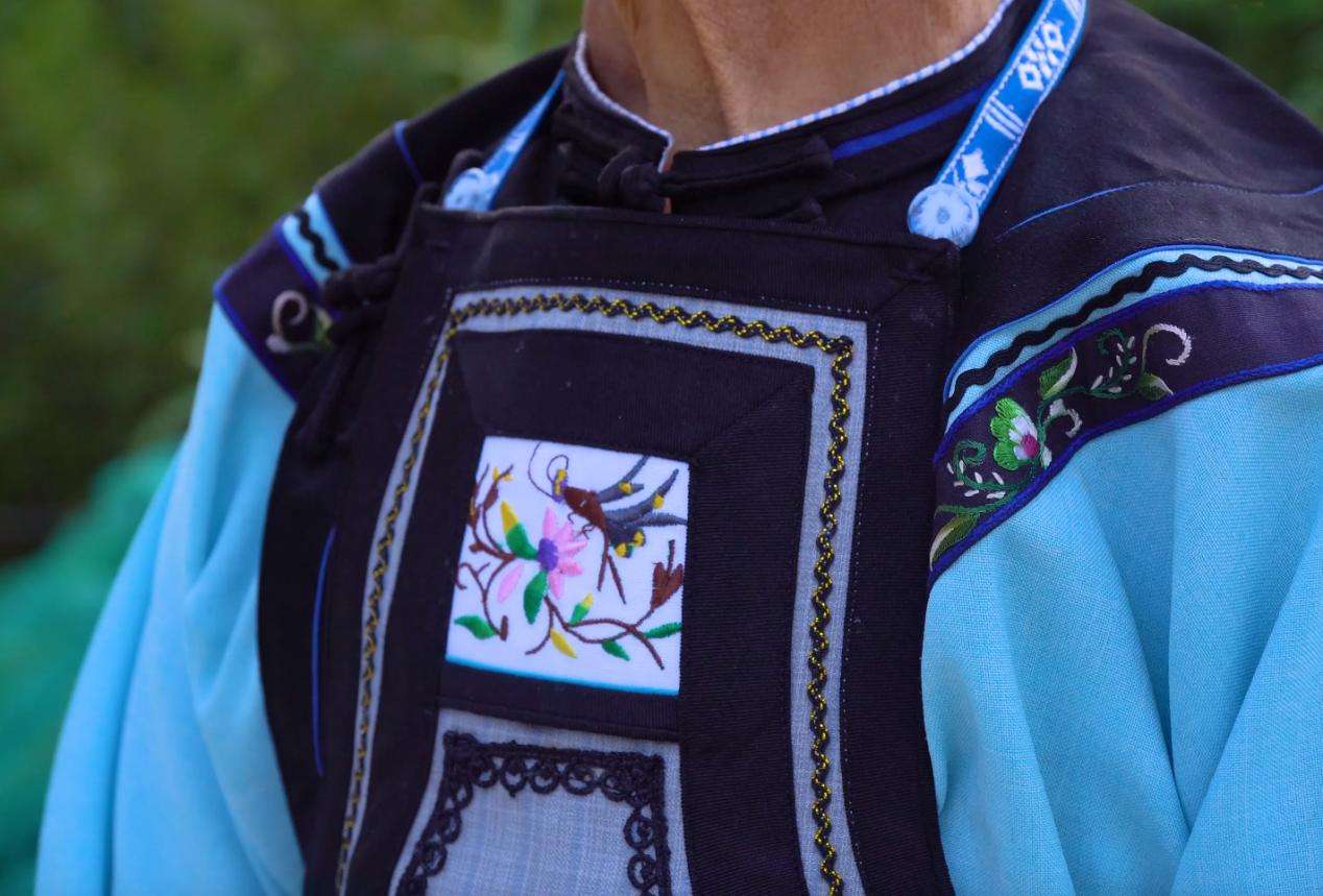 傳統(tǒng)服飾是由布依族傳統(tǒng)工藝制作而成,其上衣以藍(lán)色打底的斜襟衣和白色打底的圍腰為主,上衣對襟處繡有花草圖案作為裝飾,圍腰上部也繡有花草圖案作為描邊。下身則以黑色長褲和灰色長褲為主,衣飾上所有的雕花刺繡圖案全部出自之手。多從市場上購買。其上身對襟處和圍腰上部也繡有花紋圖案,但是這些花紋圖案則是現(xiàn)代機(jī)器之功,下身以黑色打底的長褲為主,在褲腳處繡有花草圖案,上板村布依族女性們還有一個習(xí)慣,就是不管是穿戴傳統(tǒng)服飾還是現(xiàn)代服飾都會戴有黑色圓帽?! ?/p>