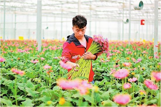 作為對“專注于中高端產品”另一維度的注解,盧忠輝舉例說明:2016年,投產后的第75天,上海虹華公司就出產了第一茬多頭菊,全部訂單來自日本、韓國,按一年生產4茬測算,每畝產量近20萬枝、產值約30萬元,土地產出效益比種包谷等傳統(tǒng)農作物提升了300多倍。