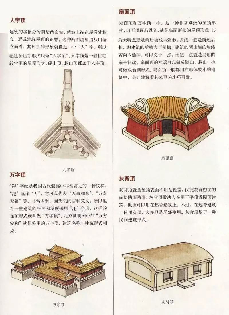 中國古建筑屋頂千變?nèi)f化,瑰麗多姿,不同的屋頂相互組合、穿插,又會(huì)形成不同的屋頂形式。
