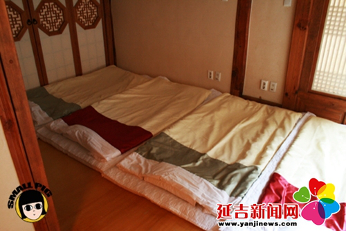 炕是朝鮮族家庭室內(nèi)活動(dòng)的主要場(chǎng)所,吃飯時(shí)女主人會(huì)將食物都擺放在低矮的小餐桌上,搬到炕上全家人席炕而坐,盤腿圍坐一起吃飯。到了晚上,人們還是會(huì)在炕上鋪上被褥睡覺。因?yàn)榭皇且患胰酥匾幕顒?dòng)場(chǎng)地,所以勤勞干凈的朝鮮族婦女,每日清晨都會(huì)以“擦炕”開啟一天的勞動(dòng)模式。