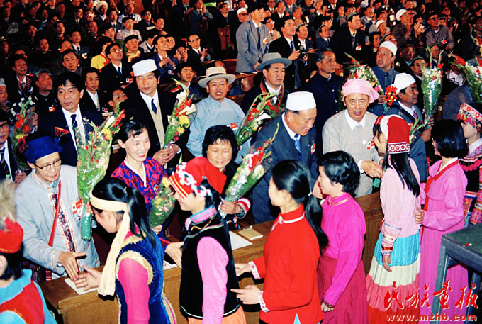 1988年4月25日至29日,首次全國民族團結進步表彰大會在北京舉行,圖為大會現(xiàn)場.《民族畫報》1988年第8期