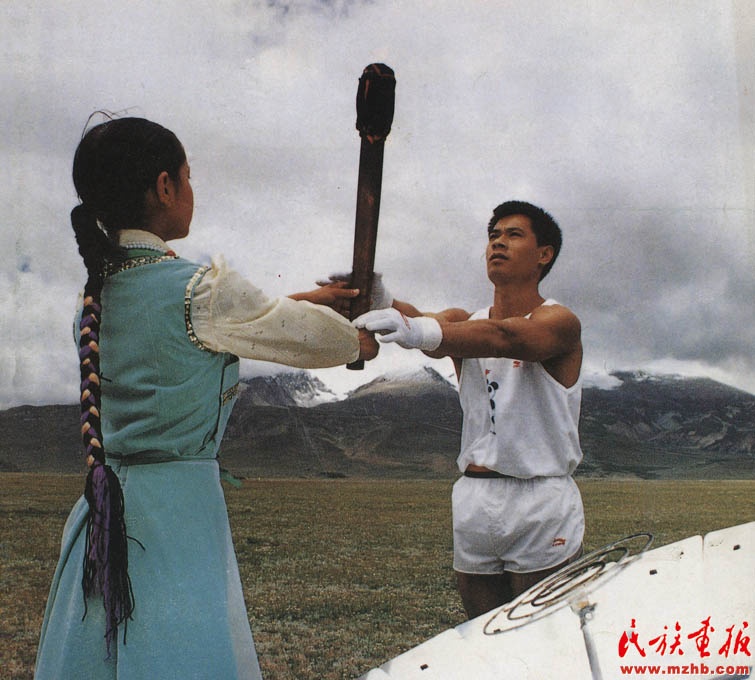 1990年,象征著亞洲30億人民“團結、友誼、進步”的第十一屆亞洲運動會在中華人民共和國首都北京隆重開幕。8月7日,在西藏的念青唐古拉峰下,藏族少女達娃央宗點燃火把,傳遞給前世界冠軍、“體操王子”李寧(壯族),李寧接過圣火,點燃了火種盒內的火種《民族畫報》1990年第11期