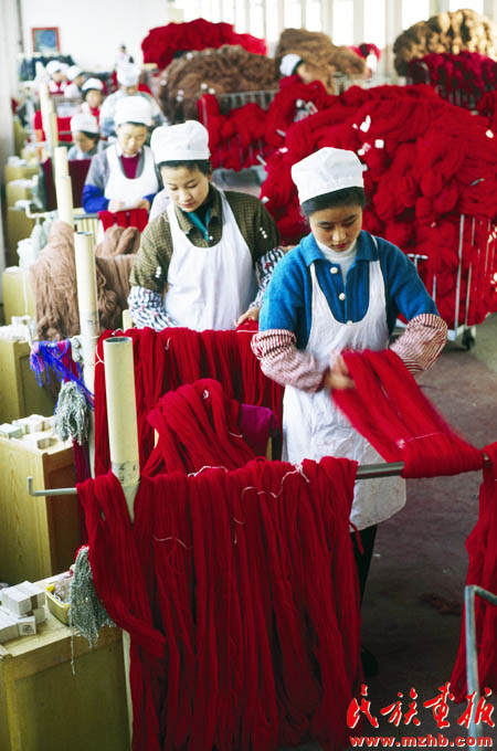 20世紀90年代初期,一些經(jīng)濟學家把戰(zhàn)略眼光投向資源豐厚的西部地區(qū),以促進中西部省區(qū)經(jīng)濟協(xié)作為目的的隴海蘭新經(jīng)濟帶悄然成型,并輻射至西亞和歐洲。圖為跨入全國800家最大工業(yè)企業(yè)行列的甘肅省天水市甘肅絨線廠。《民族畫報》1994年第4期