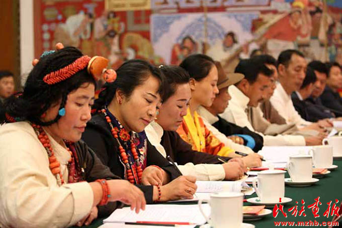 2017年10月18日,在中國共產(chǎn)黨第十九次全國代表大會上,習近平鄭重宣示:“經(jīng)過長期努力,中國特色社會主義進入了新時代,這是我國發(fā)展新的歷史方位。”十九大報告中,習近平用五句話深刻揭示了新時代的內涵,指出這個新時代,是承前啟后、繼往開來、在新的歷史條件下繼續(xù)奪取中國特色社會主義偉大勝利的時代,是決勝全面建成小康社會、進而全面建設社會主義現(xiàn)代化強國的時代,是全國各族人民團結奮斗、不斷創(chuàng)造美好生活、逐步實現(xiàn)全體人民共同富裕的時代,是全體中華兒女勠力同心、奮力實現(xiàn)中華民族偉大復興中國夢的時代,是我國日益走近世界舞臺中央、不斷為人類作出更大貢獻的時代。圖為席黨的十九大的西藏自治區(qū)代表團代表在討論十九大報告。《民族畫報》2017年第11期