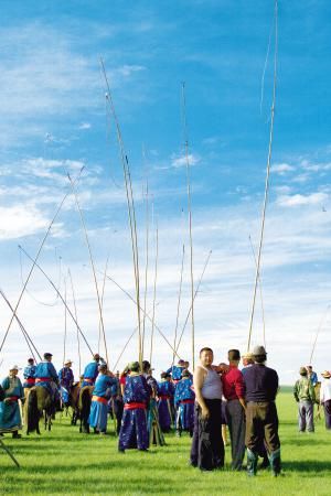 有些人和事是蒙古族所獨(dú)有的:迄今仍豎寫的文字,綜合了實(shí)用與建筑學(xué)美學(xué)原理的蒙古包,集合力量與技巧的套馬,歡樂盛會(huì)那達(dá)慕,蘊(yùn)含生存哲學(xué)的搏克,與國際象棋同理的蒙古象棋,好聽的長調(diào)與馬頭琴,以萬物崇敬為核心理念的宗教文化……事實(shí)上,能夠讓草原持久保持綠色的內(nèi)因正是游牧文明的核心價(jià)值:和諧、包容、適度索取,樂觀、智慧、堅(jiān)韌向前。這些內(nèi)涵可以從蒙古族的物質(zhì)和精神生活包括那達(dá)慕中得到答案。