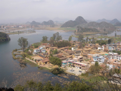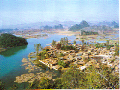 在一次學術會議上,筆者請教了首倡并主導“民族文化生態(tài)村”試點建設的尹紹亭教授,得知在他們首期的五個試點村落建設中,仙人洞村是比較成功的,于是在本項目的調查中,仙人洞村成為重點考察的對象之一。“仙人洞彝族文化生態(tài)村”位于云南丘北縣城西北16公里的普者黑湖畔。“普者黑”為當?shù)匾妥迦瞿嵴Z,意為“魚蝦多的湖潭”。普者黑實際是由眾多湖泊、河流構成,總面積達165平方公里,已經(jīng)開發(fā)成由5個景區(qū)、56個景點組成的滇東南國家級著名旅游景區(qū)。