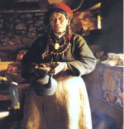 在藏區(qū),一般藏族群眾早上都要喝上幾杯酥油茶才去勞動(dòng)和工作。到藏族同志家中作客,也會(huì)得到酥油茶的款待。熱情好客的主人會(huì)拿出家中最好的酥油茶,恭恭敬敬地捧到客人面前,客人不能輕易拒絕,至少要連喝三碗。以表示對(duì)主人的尊重。喝酥油茶的規(guī)矩,一般是邊喝邊添,每次不一定喝完,但對(duì)客人的茶杯總要添滿;假如你不想喝,就不要?jiǎng)硬璞?,如果喝了一半,再喝不下了,主人把杯里的茶添滿后,你就那么擺著,告辭時(shí)再一飲而盡。這樣,才符合藏族人民的習(xí)慣和禮貌。