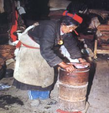 門巴族婦女在打酥油