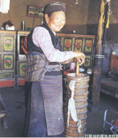 打酥油的藏族老阿媽