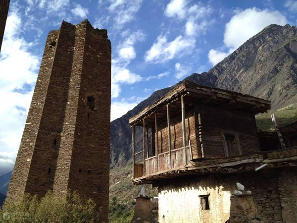 在羌語中,碉樓被稱為“邛籠”,意為美麗、高貴的房子,早在2000年前《后漢書·西南夷傳》就有羌族人“依山居止,壘石為屋,高者至十余丈”的記載。碉樓的高度在十米至三十米之間,用于御敵、貯存糧食和柴草。碉樓有四角、六角、八角幾形式,有的高達十三四層。建筑材料是石片和黃泥土,墻基深1.35米,以石片砌成。石墻內側與地面垂直,外側由下而上向內稍傾斜。修建時不繪圖、吊線、柱架支撐,全憑高超的技藝與經驗。建筑穩(wěn)固牢靠,經久不衰。自唐朝來,羌族人民因各種原因向西北遷移,到了西藏和青海,所以現(xiàn)在,羌族碉樓也往往被稱為藏族碉樓。