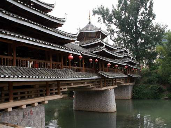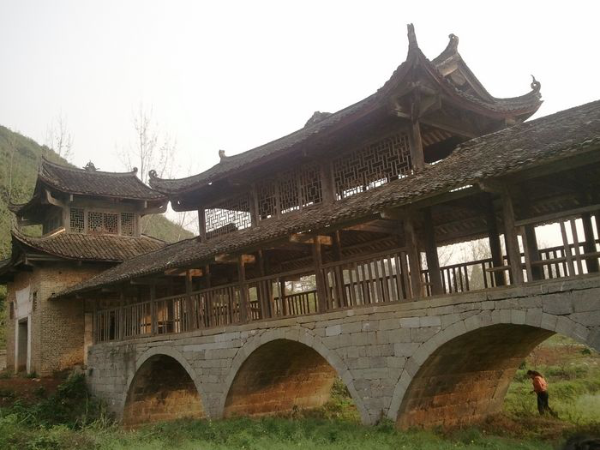 瑤族風(fēng)雨橋,又被稱之為“涼橋”或“風(fēng)水橋”。除木橋外,大多是在石拱橋上加蓋橋廊、橋亭和在橋頭的橋臺(tái)上建閣樓,穿斗式木構(gòu)架,二層檐或三層檐,有的四層檐,通高在9米~10米間。風(fēng)雨橋不僅是路人避雨之處,也是瑤族男女青年談情說(shuō)愛的約會(huì)場(chǎng)所。廣西瑤族風(fēng)雨橋主要集中在富川瑤族自治縣和恭城瑤族自治縣。富川縣保存至今的古代瑤族風(fēng)雨橋有18座,其中著名的有迥瀾橋(建于明萬(wàn)歷年間),青龍橋(與前者同時(shí)期修建),以及福壽橋、高橋、鳳溪新橋、皇侯泉橋、東轅橋、鸕鶿塘瀾通橋、龍歸橋、興隆橋等。
