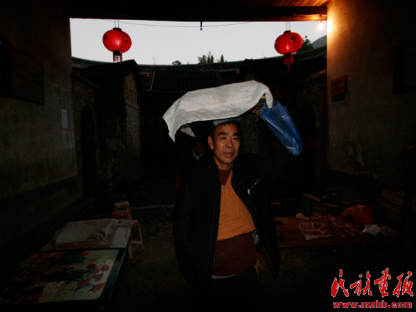 2009年,承啟樓里共有11個(gè)人結(jié)婚,江勝洪農(nóng)歷二月結(jié)婚,是最早的一個(gè),按常規(guī)他成為2010年元宵節(jié)舞龍的負(fù)責(zé)人。他說(shuō),一般舞龍隊(duì)需要20個(gè)人以上,2個(gè)人負(fù)責(zé)打鼓, 4個(gè)人敲鑼,近10個(gè)人舞龍,其他人輪換。