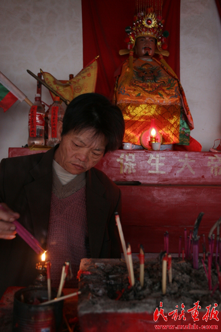 兩年來(lái),作為保生大帝廟守廟人,江云山早上起來(lái)最重要的事情就是打開(kāi)廟門,給諸神上香,敬茶。除了保生大帝神外,廟里還供奉有關(guān)公和文昌君。人們一般向關(guān)公神祈求發(fā)財(cái),向文昌君神祈求兒女考上大學(xué),早日成才。江云山說(shuō),只要真心信奉,人們來(lái)年各方面的愿望都會(huì)得到神靈的保佑。