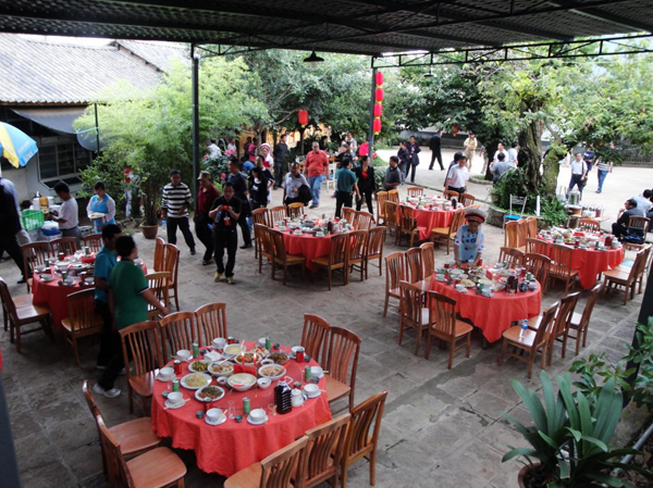 漫步在村道里,可以看見(jiàn)古色流香白族門樓,門樓寫“靈山一家”、“鳳尾居”、“古樹(shù)人家”、“松風(fēng)園”等牌匾,每家都各具特色,無(wú)不散發(fā)出濃濃農(nóng)家風(fēng)味和優(yōu)雅文化氣息。在這些集餐飲、休閑、住宿為一體的白族特色農(nóng)家樂(lè),游客可以品嘗到當(dāng)?shù)靥禺a(chǎn)野生冷菌、雞 、樹(shù)花、香竹筍、青蛙皮、金雀花,也可以躺在數(shù)百年的古板栗樹(shù)下的搖椅中,細(xì)細(xì)品味‘心靜秋澄月,情空云淡天’的意境。