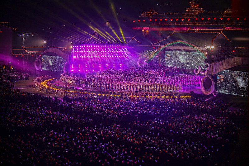2017年12月18日,中國侗年暨第八屆侗文化旅游節(jié)在貴州省黎平縣開幕,萬人同唱侗族大歌 (瞿宏倫 / 攝)