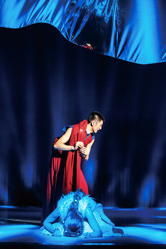 為何我們會記住倉央嘉措?無論你是否到過西藏,你看了這部舞劇后最終都會明白,因為他是一位動人心魄的情僧。他的情詩,亦是情花,遍灑在這片土地上,令繁花盛開,情緣流長。我們難以忘懷的不是這位達賴喇嘛傳奇的身份,而是他對家鄉(xiāng)深深的眷念,對情愛的難以割舍。歲月無情亦有情,它做了時間的信差,傳遞了300年前的故事。面對情感,無論多么堅強的心都會變得柔軟。所以每一個讀過倉央嘉措詩歌的人,都會陷入那濤濤的情海里難以自拔。