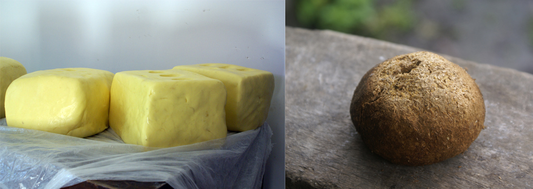 珞巴族各部落的食物大多以谷類為主,主食有玉米、雞爪谷、粟米、青稞、高粱、蕎麥等,尤以玉米、雞爪谷為主。另外,“達(dá)榭”和“達(dá)薺”也是許多珞巴族部落主要的食物來源?!斑_(dá)榭”和“達(dá)薺”是淀粉含量很高的野生植物,經(jīng)過較復(fù)雜的加工,能提取出淀粉,即人們?nèi)粘J秤玫倪_(dá)榭粉,食用方法仍是調(diào)成糊狀或者烙餅。除了上述的主要食物外,珞巴族人還愛吃一些植物根莖,如土豆、山芋等,一般放入火塘中烘烤或者煮食。