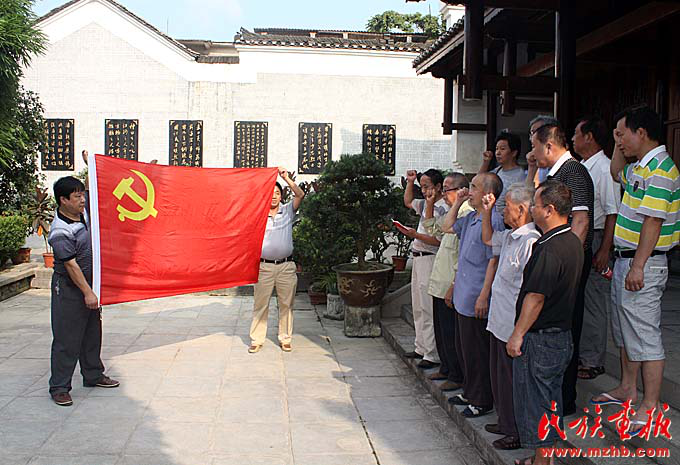 許多人在鄧恩銘烈士故居前重溫入黨誓詞