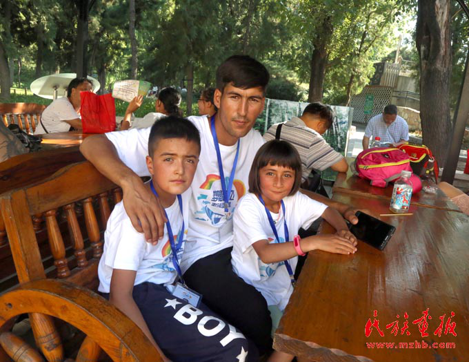 在全國各地的支援下,塔吉克族學(xué)生和老師有機會走出大山,出外看看,這是師生三人在北京(娘吉加 攝影)
