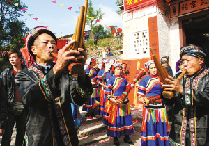 獨具瑤族特色的吹笙跶鼓舞。