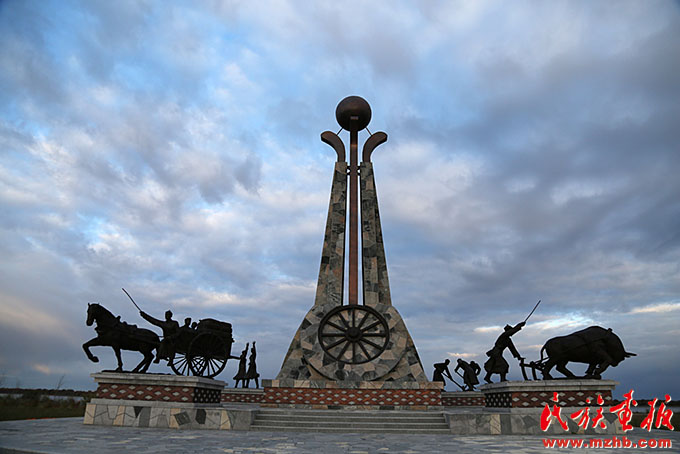 廣場(chǎng)上的足跡反映的是達(dá)斡爾人南遷時(shí)留下的腳印、馬蹄印、車轍印