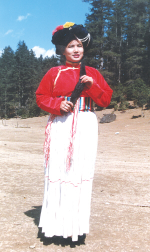 如火襟衣 似雪褶裙 虹彩腰帶 山花紅艷的普米族服飾