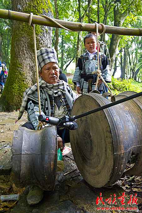 銅鼓是彝族倮家人心靈的號(hào)角,有銅鼓的地方就有倮家人。伴隨著古老的銅鼓聲,倮人開(kāi)始慶?!笆w菜節(jié)”