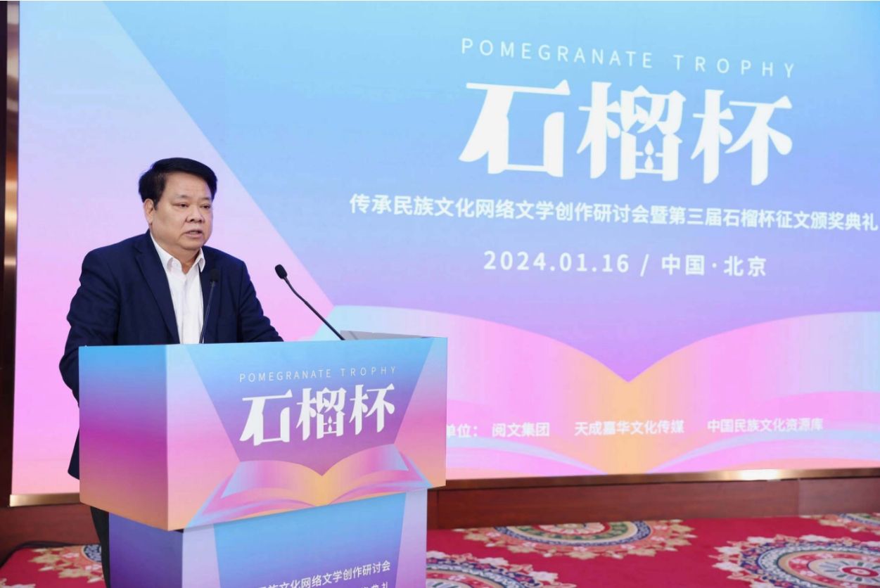 1月16日,由閱文集團、北京天成嘉華文化傳媒主辦的“傳承民族文化網(wǎng)絡(luò)文學創(chuàng)作研討會暨第三屆石榴杯征文頒獎典禮”在北京民族文化宮舉行?;顒迂瀼貒颐裎椭袊鲄f(xié)聯(lián)合發(fā)出的《關(guān)于以鑄牢中華民族共同體意識為主線推動新時代民族文學事業(yè)高質(zhì)量發(fā)展的意見》的精神,旨在突出民族團結(jié)主題,鼓勵民族題材創(chuàng)作,挖掘具有市場開發(fā)潛力的網(wǎng)文作品,推動“民族 IP”轉(zhuǎn)化。