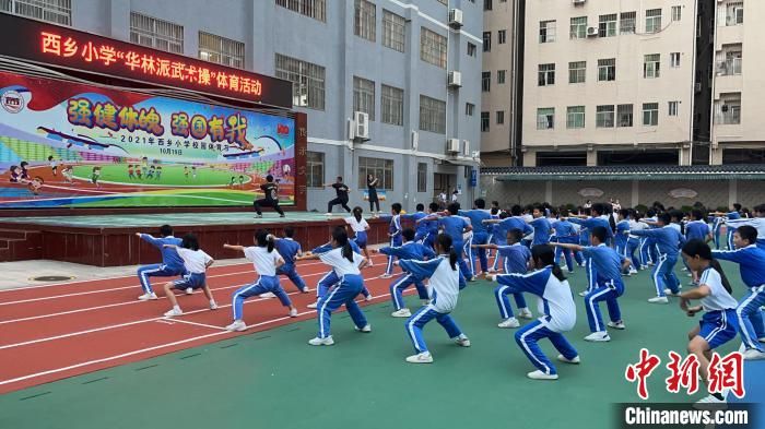 深圳市寶安區(qū)西鄉(xiāng)小學(xué)的學(xué)生們在練習(xí)華林派武術(shù)操 西鄉(xiāng)小學(xué) 供圖