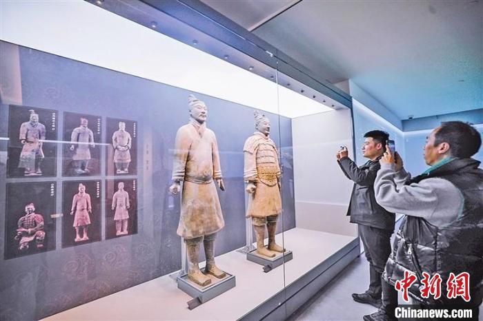“除了秦始皇帝陵博物院,我們還向浙江省博物館、浙江省考古所、安吉縣博物館借了展品?!笨掳岔槺硎荆慰蛠?lái)到這里,既能看到兵馬俑等文物,也能通過(guò)圖文并茂形式了解秦磚、漢瓦、兵器等知識(shí),到了二樓還能享受與兵馬俑有關(guān)的沉浸式互動(dòng)體驗(yàn)。