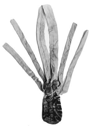 “元和元年”銘文錦囊,東漢時期,民豐縣尼雅墓地出土。