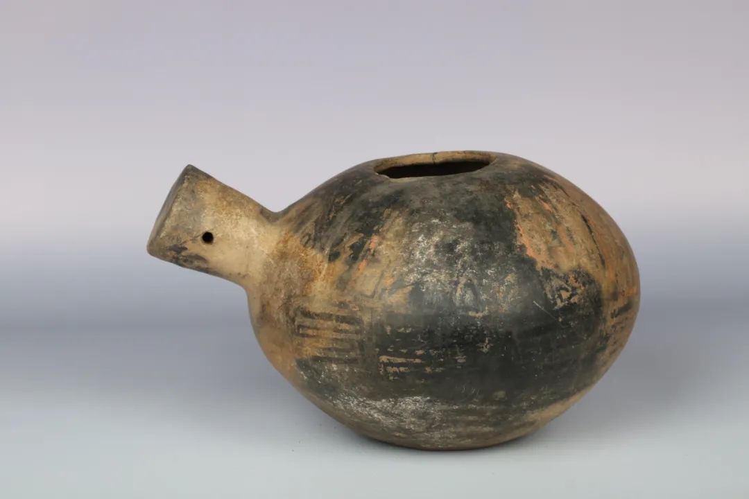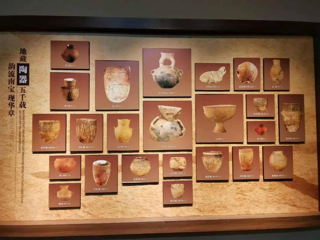陶韻風(fēng)采;生活穩(wěn)定的南寶先民,在生產(chǎn)之余,加快了對(duì)藝術(shù)追求的步伐,接受來(lái)自周鄰?fù)谖幕挠绊?,他們開(kāi)始在日常使用的陶器上面描繪圖案,形成了獨(dú)特的南寶風(fēng)格。雍容華貴的彩陶?qǐng)D案,紋樣繁復(fù)的劃刻特點(diǎn),宛如一面面飄揚(yáng)在這里的旗幟,引領(lǐng)著南寶先民走出原始泥沼,迎接文明曙光。