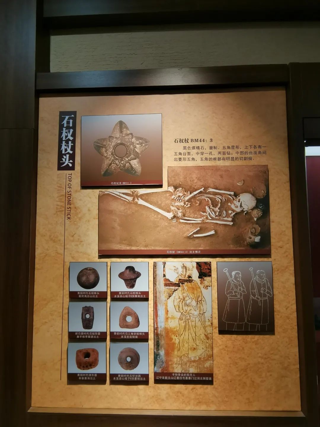 部落結(jié)構(gòu);南寶遺存中發(fā)現(xiàn)一件青石制成的石權(quán)杖首和一批與相關(guān)的玉制品引人注目,這些應(yīng)是部落酋長(zhǎng)或具首領(lǐng)身份的聚落成員標(biāo)志,反映出南寶聚落已經(jīng)出現(xiàn)等級(jí)差別。遺址中發(fā)現(xiàn)的四個(gè)完整骨角質(zhì)冠飾,出土?xí)r均套箍在遺骸頭顱上,顯然是一種帽子,是戴冠人特殊身份和地位的象征。