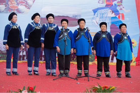 扁坡村“三月三”隨著社會的進(jìn)步,活動的重心逐漸向民族文化等歌舞表演形式轉(zhuǎn)移,但布依族從古至今都是一個注重農(nóng)耕文明的民族,他們對于大地的熱愛,無以言表卻在歌舞中流露著民族的敬仰之情。阿婆們穿著質(zhì)樸的民族服飾,深藍(lán)的衣裙襯得她們莊重又從容,唱著那布依老歌,仿佛家中的老奶奶坐在長椅上溫柔地向孩子們訴說過去的種種。