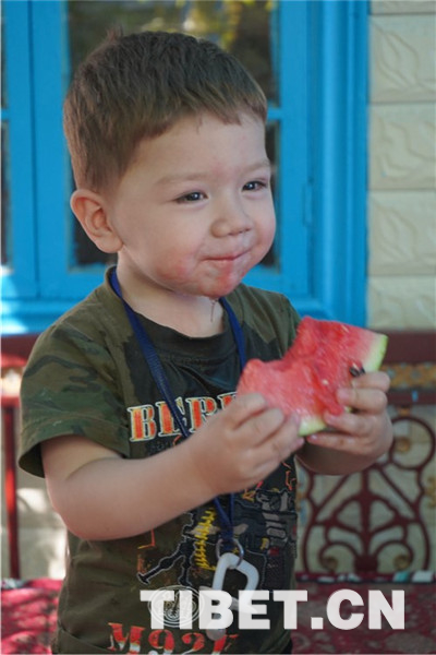 “馕是當(dāng)?shù)厝穗x不開的食物,包括這里的漢族群眾,現(xiàn)在都已經(jīng)習(xí)慣了這樣的飲食。我曾見過當(dāng)?shù)匾恍h族朋友到內(nèi)地一趟,回來后第一件事就是吃拌面、烤肉,喝奶茶,我們多個民族的人長期居住在這里,生活早已交融在一起了?!碑?dāng)?shù)鼐用窈Aβ?阿吾提對記者說。圖為當(dāng)?shù)靥厣朗场?/p>