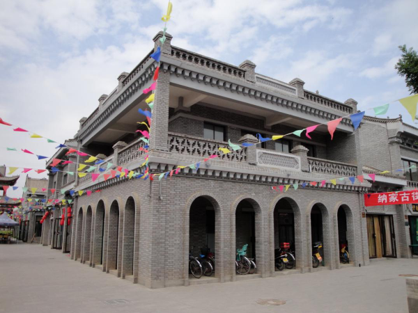 中華回鄉(xiāng)第一街位于永寧縣納家戶北側。該項目以納家戶清真大寺為中心擴展門前廣場,以廣場為中心向北,直北長380米,東西寬107米,占地面積93.78畝,建筑面積1.6萬平方米,建成商鋪177套。所有建筑遵循當?shù)鼗刈宓慕ㄖL格,采用青磚砌筑,尤其在細節(jié)處理上用符號、色調與裝飾來表現(xiàn)回族建筑的精髓。雕梁畫棟,飛檐四出,并且在墻壁、牌坊、檐口、山墻等處運用了大量磚雕、伊斯蘭花飾等將伊斯蘭文化藝術與中國傳統(tǒng)建筑風格有機的結合在一起,為景區(qū)增加了濃郁的歷史文化氛圍。該街道由北向南依次分為土特產(chǎn)區(qū)、民俗文化區(qū)、旅游紀念區(qū)、餐飲區(qū)、配套商業(yè)區(qū)五大功能區(qū)。