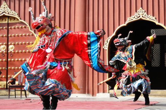 內(nèi)蒙地區(qū)的查瑪樂舞已與藏族地區(qū)的“羌姆”明顯不同。隨著藏傳佛教傳入蒙古地區(qū)后,積極的吸收和融合了蒙古族傳統(tǒng)音樂舞蹈和薩滿教神舞的因素后形成了蒙古化的查瑪樂舞。因此,內(nèi)蒙地區(qū)的查瑪內(nèi)具有復(fù)合型和多元性特點。2008年,查瑪樂舞被列入國家級非物質(zhì)文化遺產(chǎn)。