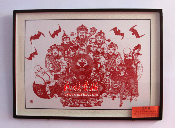 豐寧剪紙中源于中國神話的《五財神》,寄寓著對大富大貴生活的憧憬