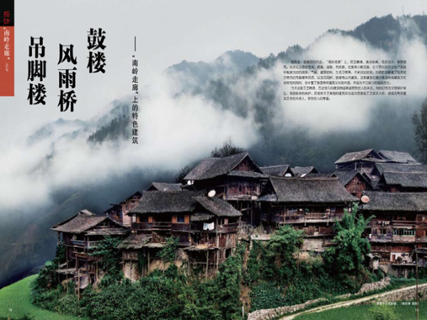建筑是一部凝固的歷史。“南嶺走廊”上,層巒疊嶂,溪流縱橫,雨水充沛,森林密布。生活在這里的苗族、侗族、瑤族、布依族、壯族等少數(shù)民族,在千百年的勞動(dòng)生產(chǎn)實(shí)踐中根據(jù)當(dāng)?shù)氐牡匦巍夂?、建筑材料、生活?xí)慣等,不斷總結(jié)經(jīng)驗(yàn),創(chuàng)造性地修建了獨(dú)具地方特色的吊腳樓等民居,以及風(fēng)雨橋、鼓樓等公共建筑,這些建筑在展示我國傳統(tǒng)建筑文化多樣性的同時(shí),也豐富了我國傳統(tǒng)建筑文化的內(nèi)容,成為不可缺少的組成部分。
