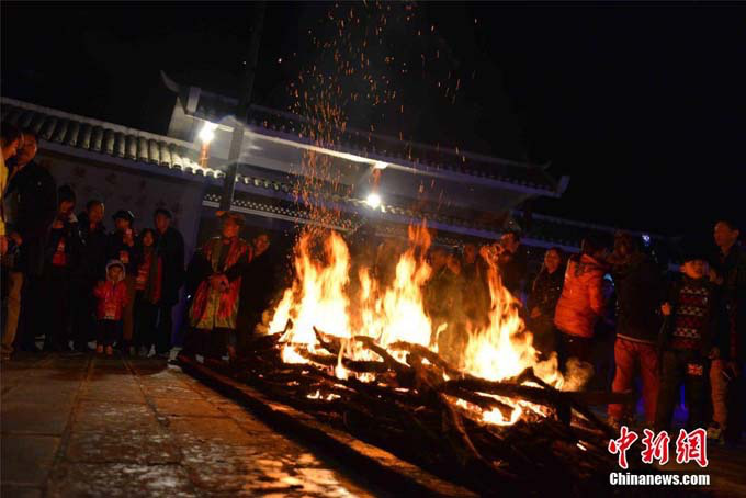 12月6日夜晚,在廣西金秀瑤族自治縣,瑤族百姓