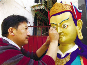 西藏自治區(qū)拉薩市城關區(qū)恰彩崗路11號是八廓街東面諸多巷院里一個極其普通的大院。在這里,一個集土建、唐卡繪畫、金屬雕刻、木雕、古藝建筑研究、西藏傳統(tǒng)手工藝技能培訓為一體的國家文化產(chǎn)業(yè)示范基地——拉薩古藝建筑美術公司就坐落在這個古樸的大院內。