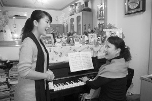 阿娜丹在恩師張貴華家上課。阿娜丹供圖