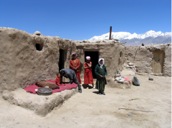塔吉克族的房屋一般為土木結(jié)構(gòu)正方形的平屋頂,塔吉克語叫做“藍(lán)蓋力”。塔吉克族的房屋雖然沒有窗戶,但屋頂中央都會(huì)開有天窗。