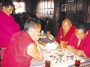 無論如何,藏棋是流傳下來了。過去,藏棋一般是在藏族上層貴族間流傳,之后也傳入了周邊尼泊爾、錫金、不丹等國。據(jù)說1958年錫金王子去日本訪問時,曾與日本圍棋高手對弈一種規(guī)則奇特的圍棋,棋盤也是自帶的,引起了日本棋壇的驚異,而這位錫金王子說是學(xué)自西藏僧人。這種奇特的圍棋應(yīng)該就是藏棋。