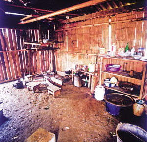 云南省西盟佤族自治縣里所鄉(xiāng)阿佤來(lái)村單建的火塘和糧柜間
