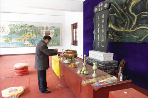 錫伯族同胞在祖先牌位前敬香