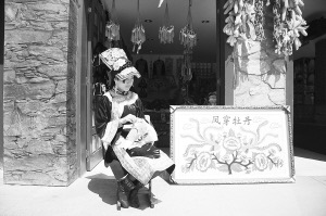 不一會兒,年過花甲的王大爺夫婦來到柜臺前買羌繡包,想以此作為離開家鄉(xiāng)汶川的紀念品。老夫婦傷感猶存地說:“地震時,我們生活在縣城逃脫了厄運。然而,唯一的兒子在去理縣出差途中遇難?,F(xiàn)在,我們住在都江堰,回鄉(xiāng)看看……”
